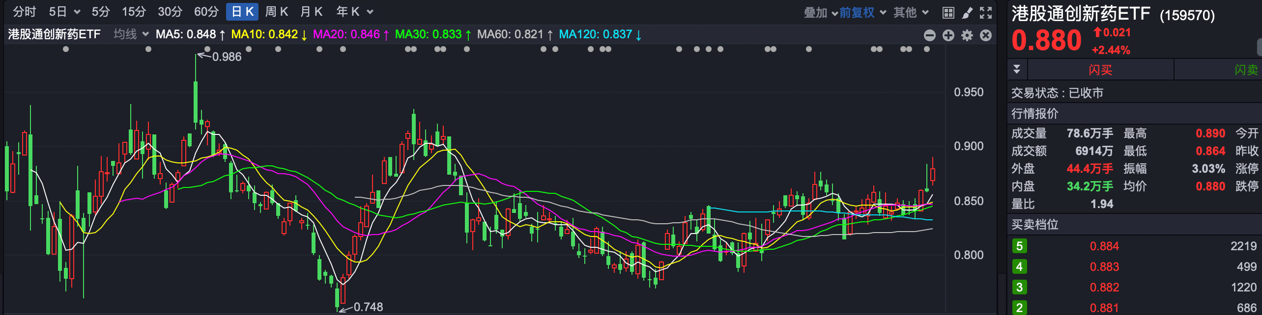 除了纳指相关ETF外,布局港股市场创新药板块的ETF也表现不俗。其中,港股通创新药ETF(159570)周涨幅超过5%,港股创新药ETF(513120)上涨4.88%。